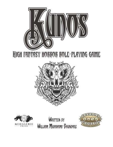 Kunos is a high fantasy horror role-playing setting for Pinnacle’s Savage Worlds system. Kunos is a world filled with terrible things that lurk in dark places, a place where sword and spell meet scuttling creatures and their deranged minions. In Kunos, hope and heroes battle against nightmare forces that snuck into the world via cracks in reality.